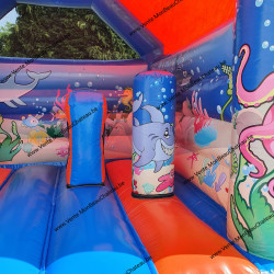- Ce château gonflable est couvert, ce qui est un avantage par grand soleil ou en cas de temps incertain.