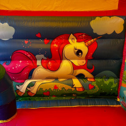 - Ce château gonflable est couvert, ce qui est un avantage par grand soleil ou en cas de temps incertain.